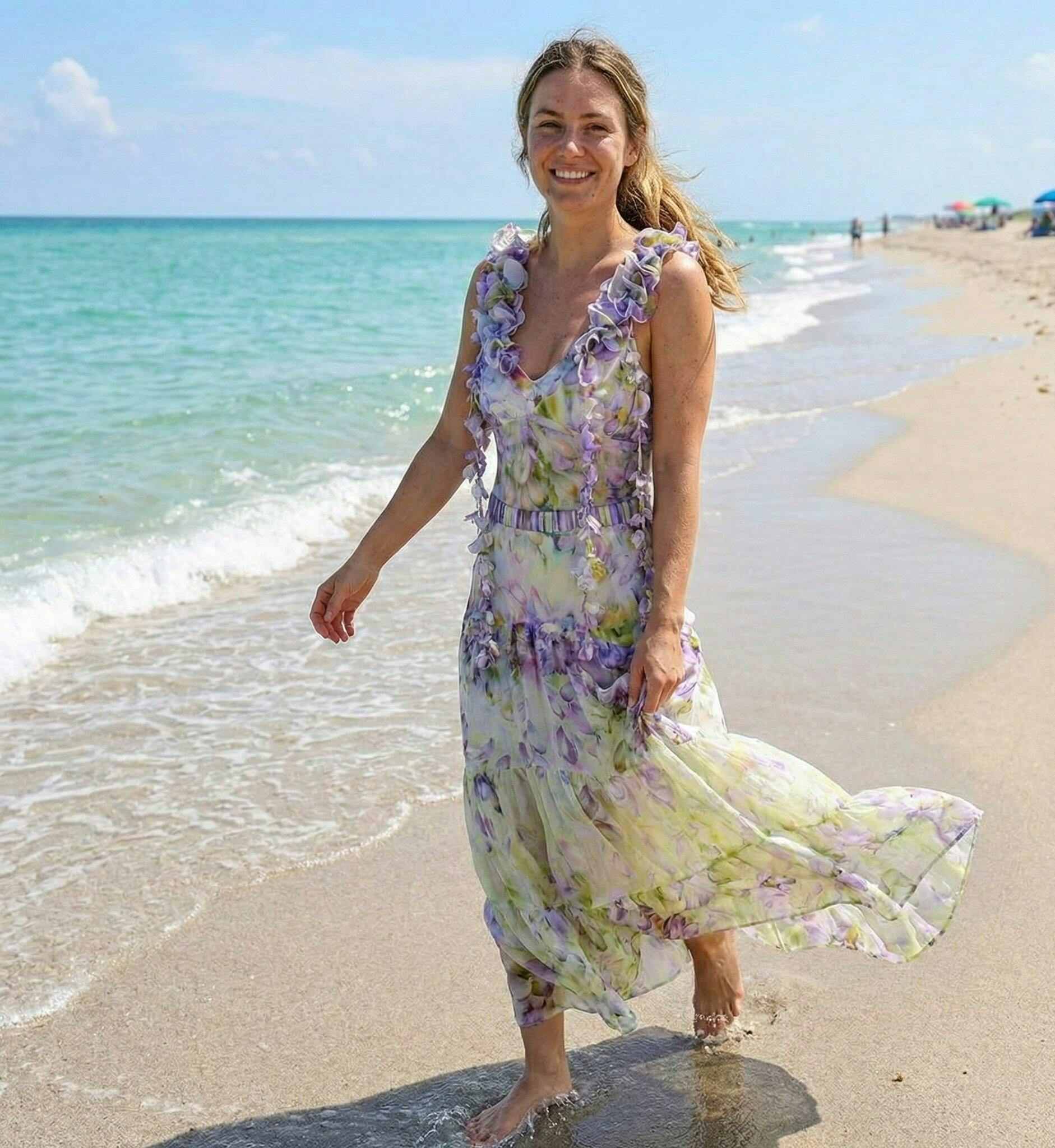 Monet’s Garden Watercolour Floral Ruffle Swimsuit & Tiered Maxi Skirt Set
